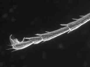 صورة لقرن الاستشعار لدى النملة (الهوائي)، وتأمل معي التعقيد والدقة في التصميم والصنع، مع العلم أن سماكة هذا الهوائي لا تتجاوز أجزاء قليلة من المئة من الميليمتر.