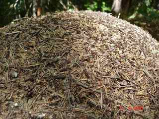 إن النمل بنّاء ماهر وذكي جداً، ففي هذا العش الذي يظهر في الصورة رفع النمل مدخل العش فوق مستوى سطح الأرض خوفاً من الأمطار والمياه، مع العلم أن العش تحت سطح التراب ولكن الذي يظهر في الصورة هو مدخل العش فقط!